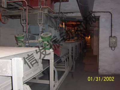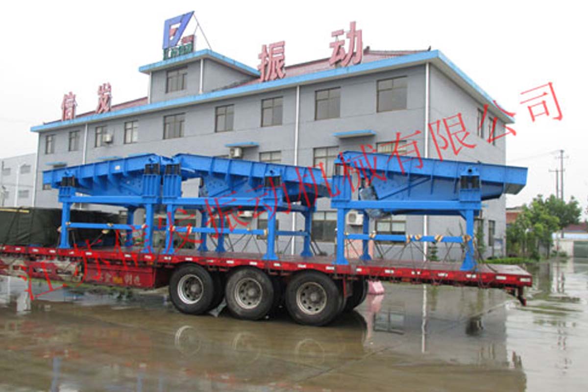 1.生產率的確定:本系列自同步慣性振動給料機的生產率是以河砂為標準物料給出的(堆比重為1.6T/m3)。當物料堆比重大于1.6T/m3時,其產量可按額定值選取;當物料的堆比重在1.2~1.6T/m3時,其產量可達到額定產量的0.9~1.0倍。當物料堆比重在0.8~1.2T/m3時,其產量可過到額定值的0.8~0.9倍。物料堆比重小于1.6T/m3時,須適當增加料層厚度,以提高產量。對于振動給料機難于輸送的物料(如滑石粉、鈦白粉、白泥、面粉、粘土等),以及含水量較大的親水性物料,則應根據試驗確定產量。必要時將槽體適當傾斜安裝(一般向下傾斜10~15度),以增加給料量。