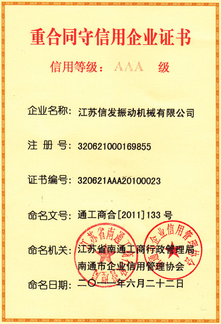 重合同守信用證書